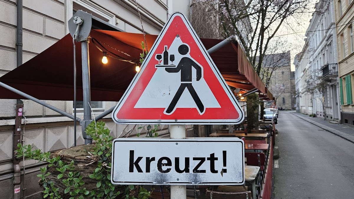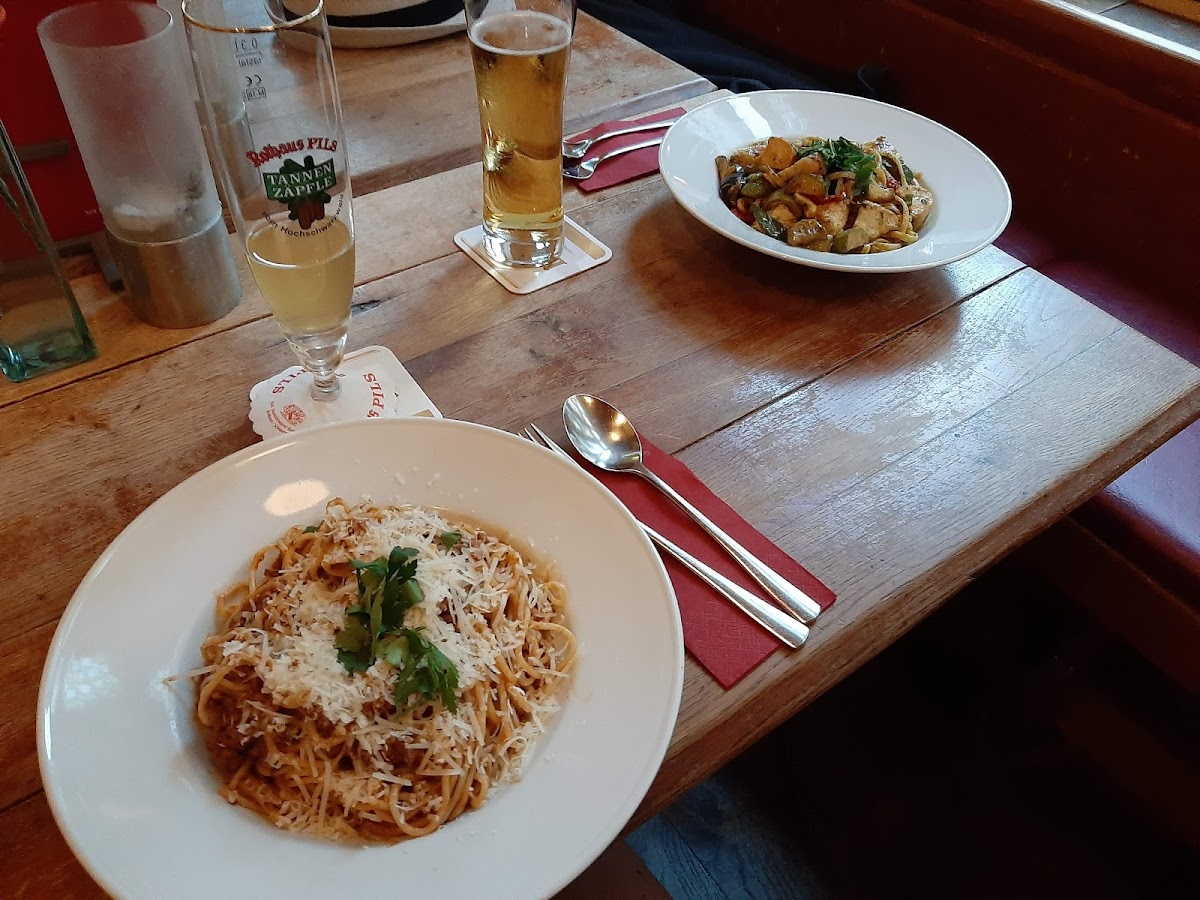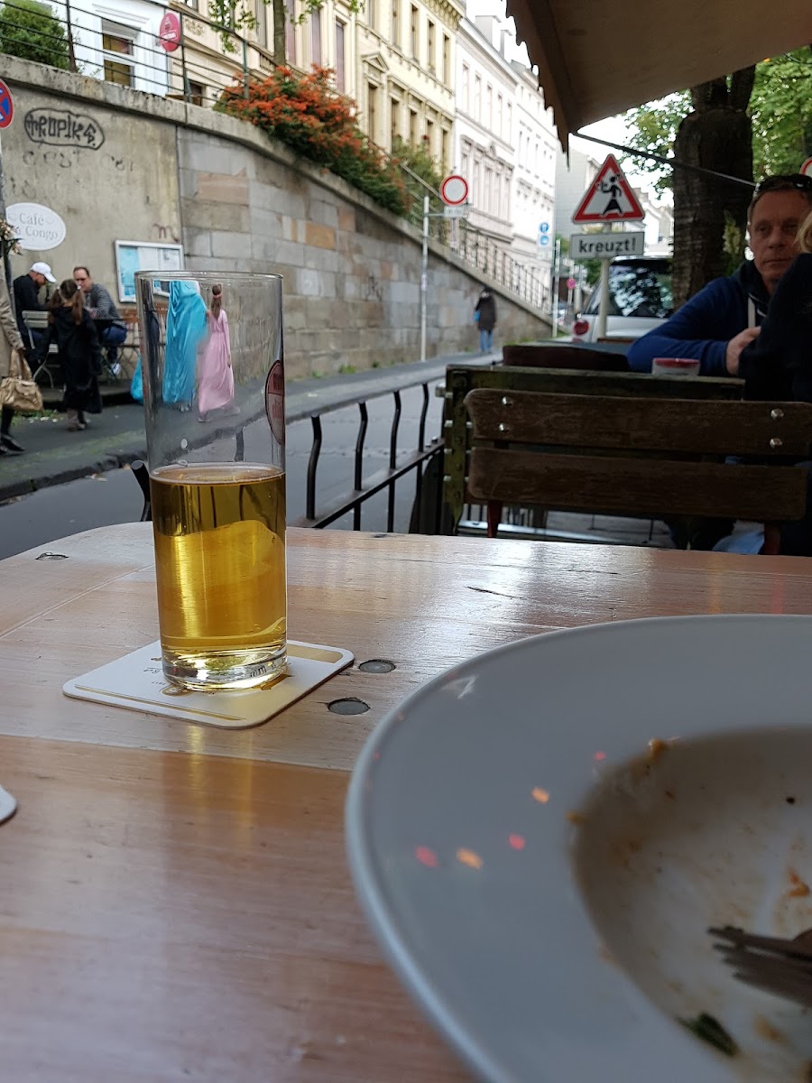 Lovely cobbled part of town. Brilliant service in English. Tasty pasta and risotto dishes ... the was lots of choice but my German is very limited. Fab trust tab system. About 10 tables inside plus another 5 or 6 outside across the tiny street. The football was also playing one night with about 6 people watching from the small bar. Relaxed atmosphere.