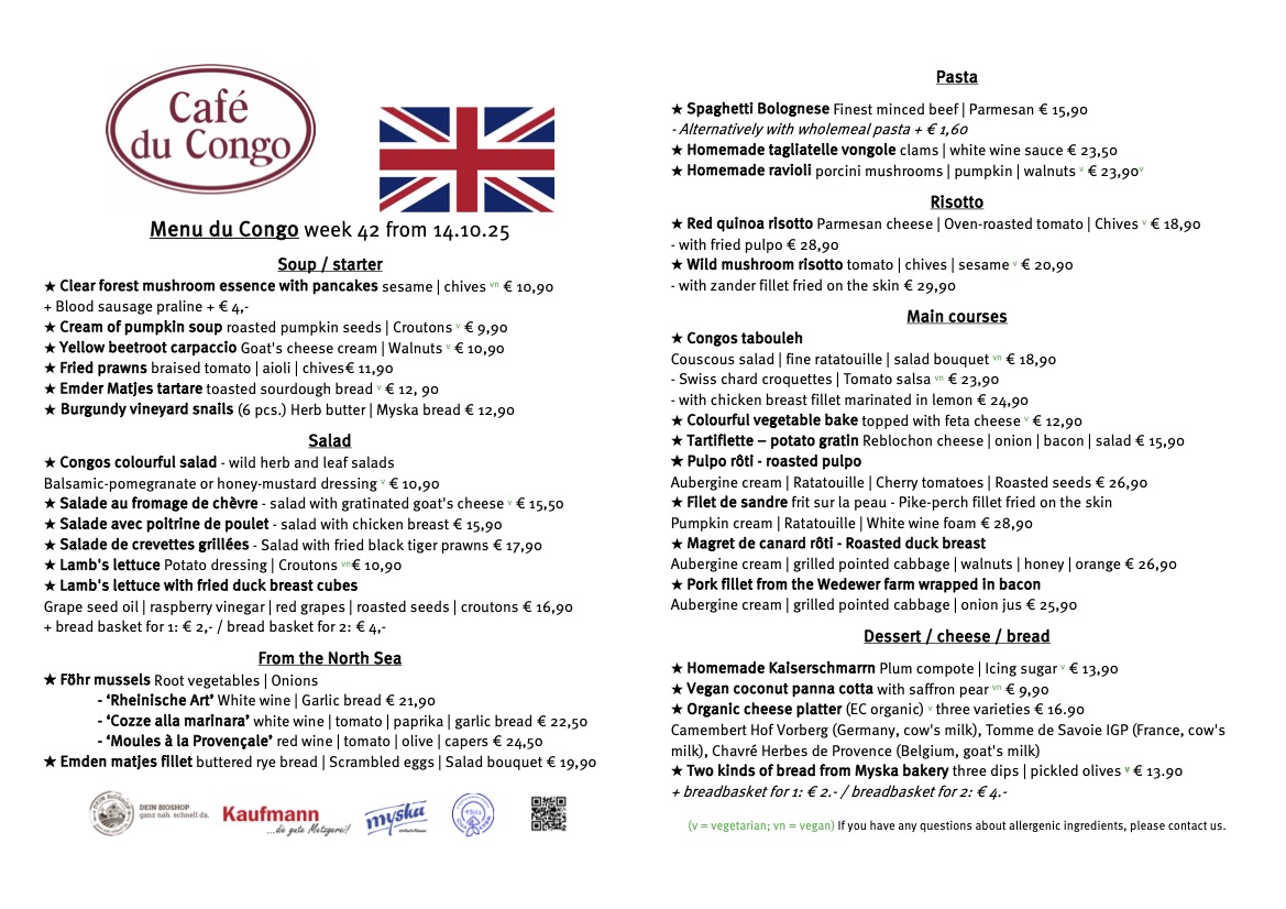 With a commitment to fresh ingredients and quality dishes, Café du Congo promises an immersive gastronomic experience that is as vibrant as the atmosphere itself. Don’t miss the seasonal Austernwochenende, showcasing exquisite oysters!